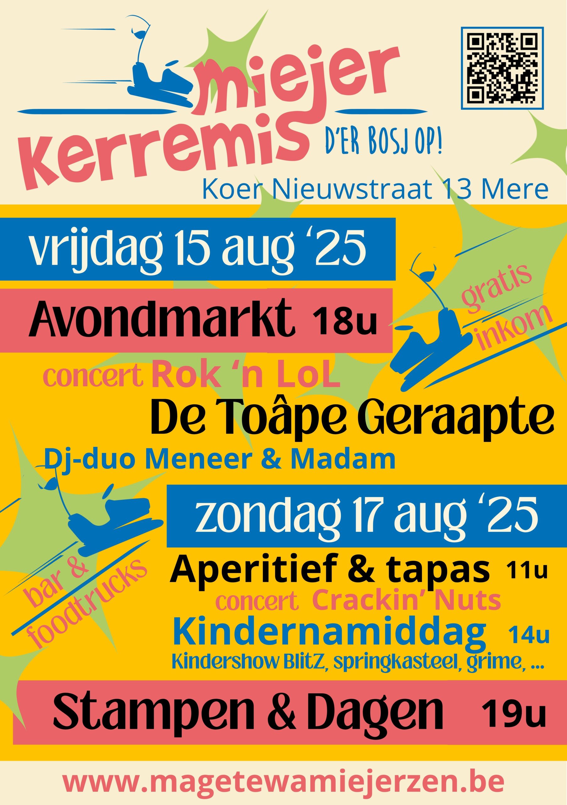 Voor een stevige portie kermisambiance met spetterende optredens en swingende dansplaatjes moet je op de koer van het OC Mere in de Nieuwstraat zijn.